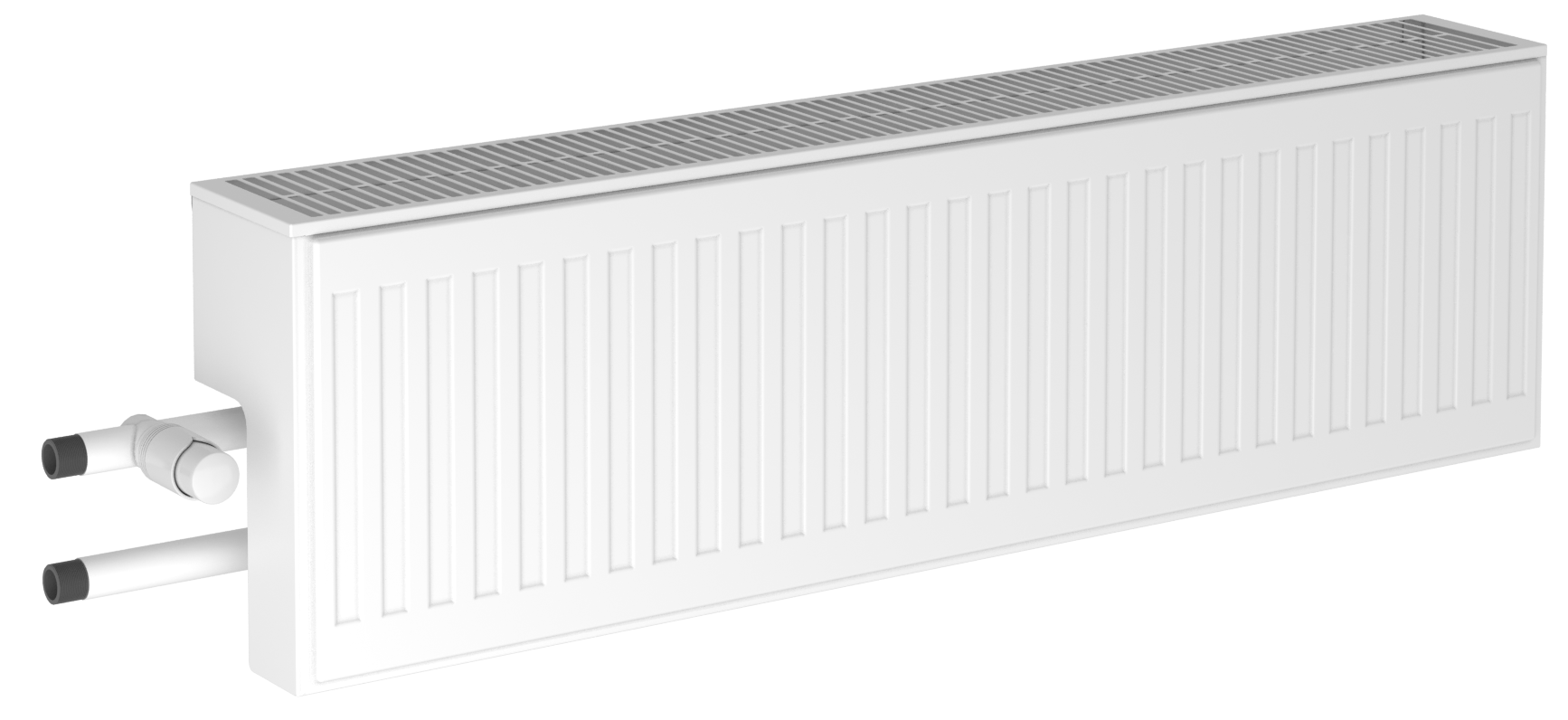 Благодаря наличию кожуха, в линейке Premier реализована возможность скрытого нижнего подключения конвектора к трубопроводу, позволяющая присоединить конвектор к Н-образному отсечному узлу, который обычно применяется при горизонтальной разводке отопления в современном строительстве.