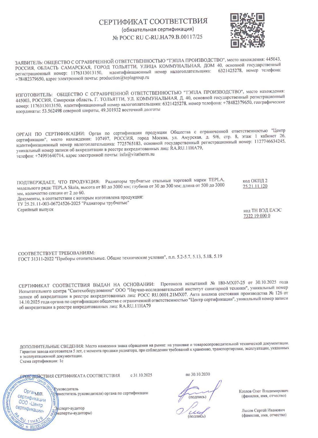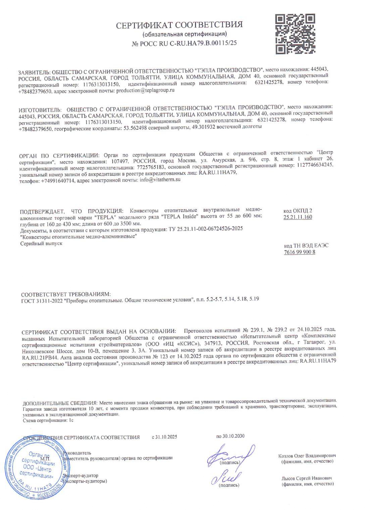 Обязательные сертификаты на конвекторы и трубчатые радиаторы Tepla