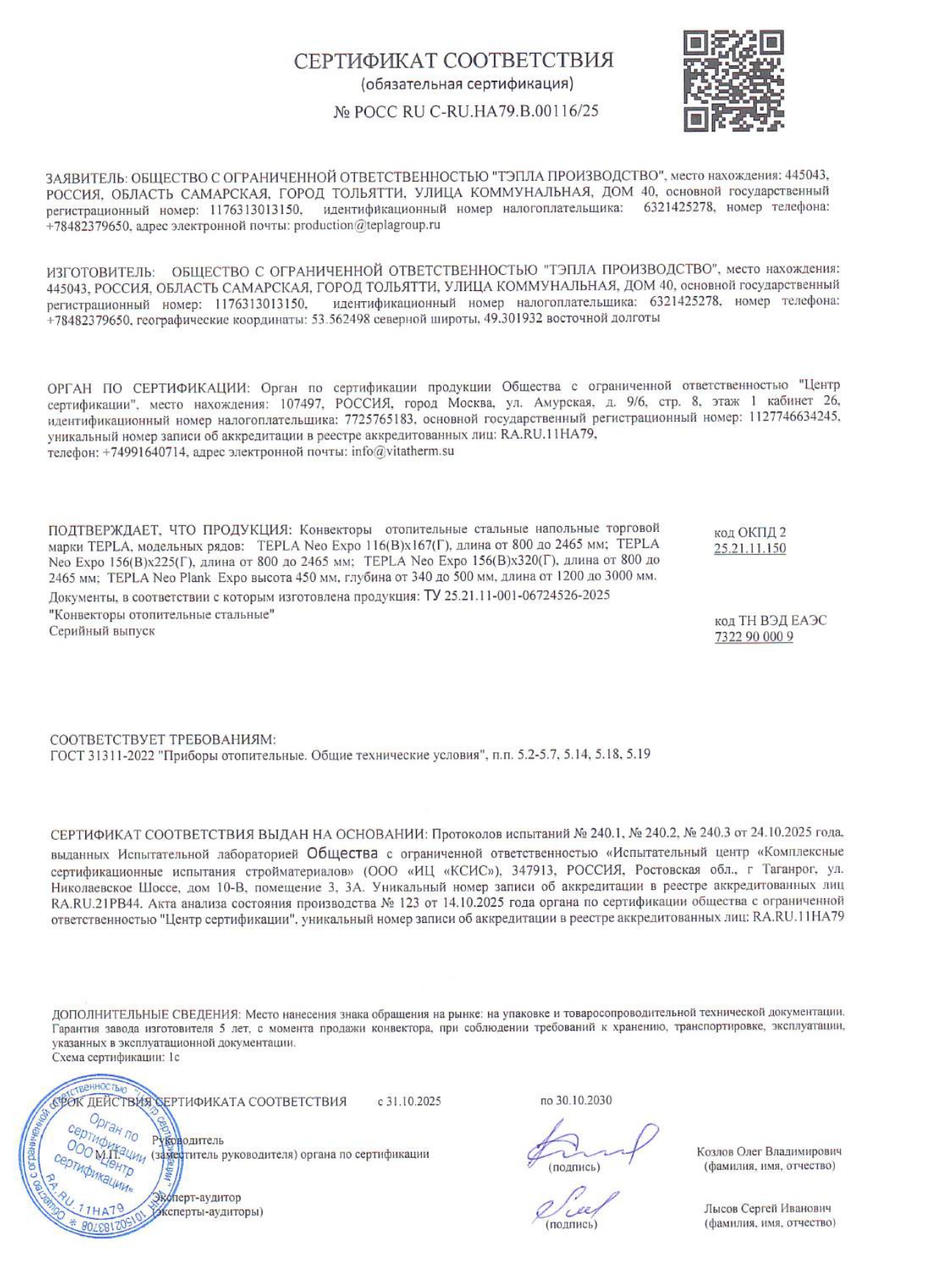 Обязательный сертификат соответствия на Tepla "Neo Expo" и "Neo Plank Expo"